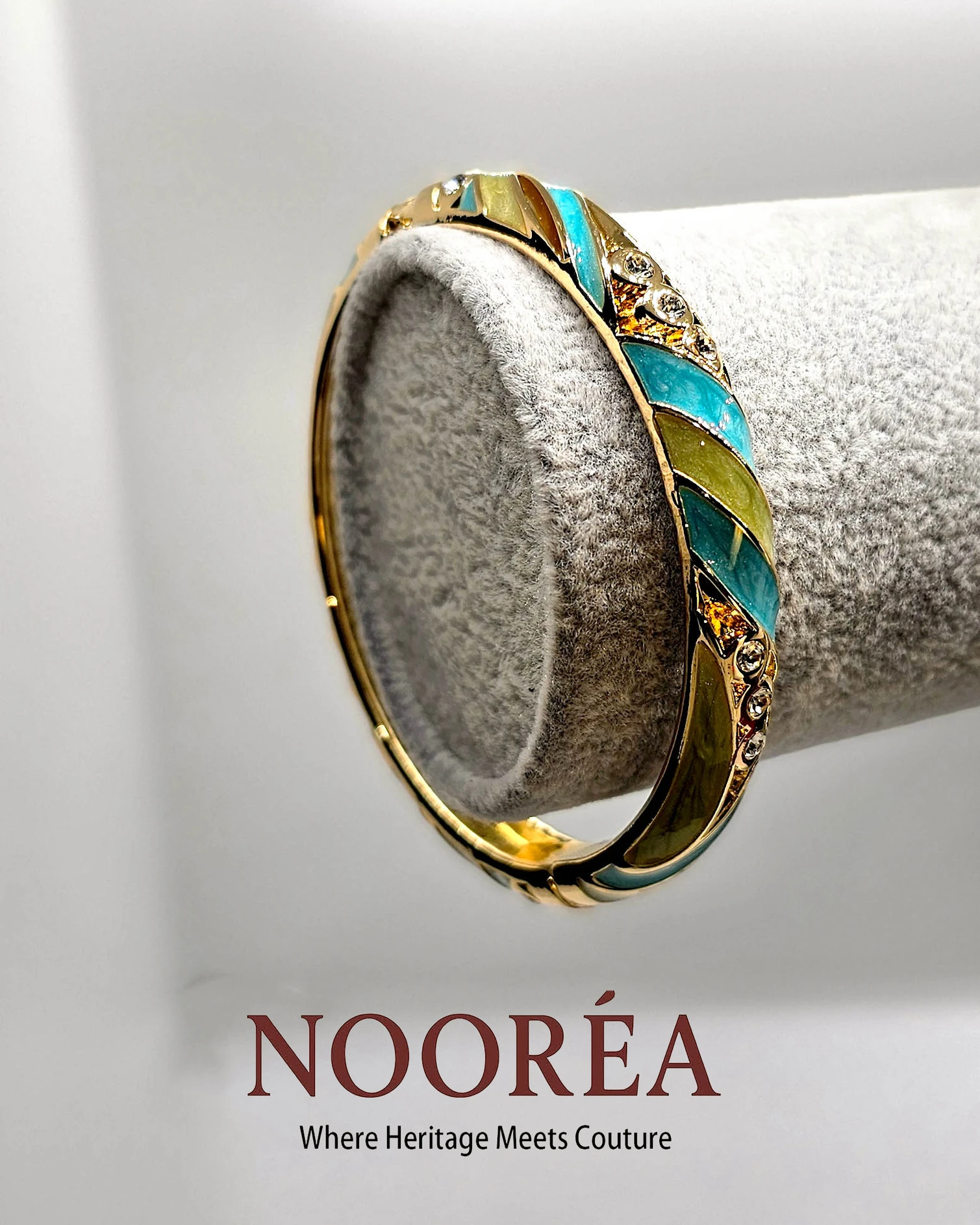 Cool aqua tones meet delicate gold — a whisper of sophistication.