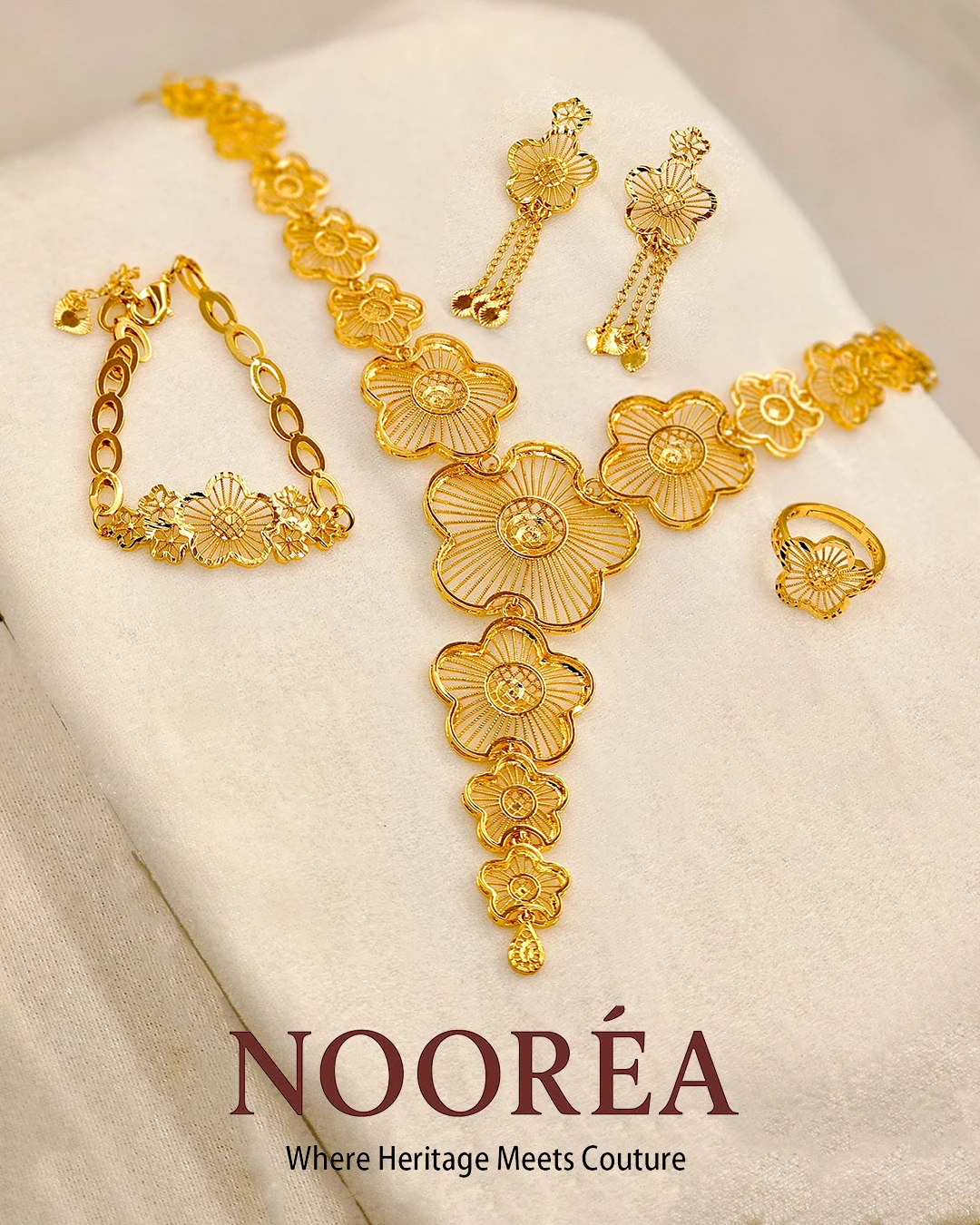 Crafted with multiple connected traditional elements, the Grand Heritage Layer Set offers a rich bridal-inspired look. Ideal for bridesmaids, family wedding functions, or anyone who loves heavy statement jewelry.