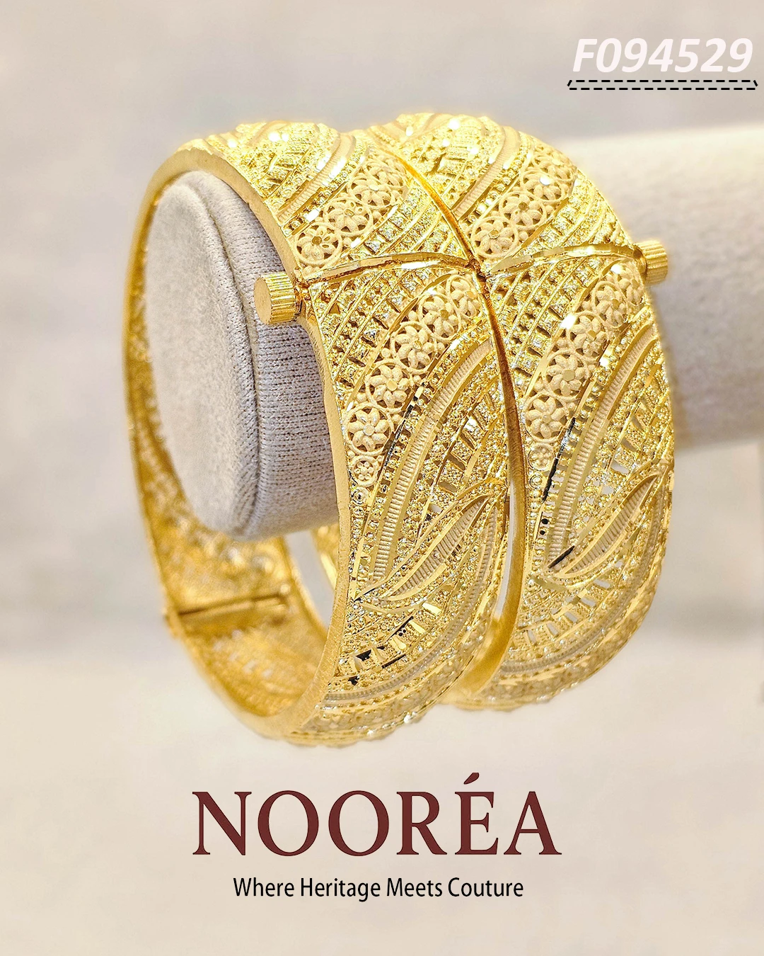 The Mayura Crest Bangle is designed for those who want their jewelry to tell a story. This piece features a broader silhouette with dramatic, sweeping curves and delicate floral jaal work. The 1.5 gold polish gives it the authentic weight and look of solid gold, while the ergonomic clasp ensures a secure and comfortable fit. It is the ultimate “Heritage Meets Couture” piece for the modern bride or guest.