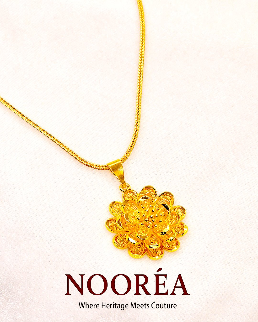Make a statement with the Sahasra Lotus Pendant. This piece features an extraordinary level of detail, with multiple layers of textured gold petals creating a realistic 3D bloom. Suspended from a sleek 18-inch gold-toned snake chain, the pendant sits prominently as a symbol of purity and rebirth. Whether worn alone or layered, it is a definitive conversation piece.